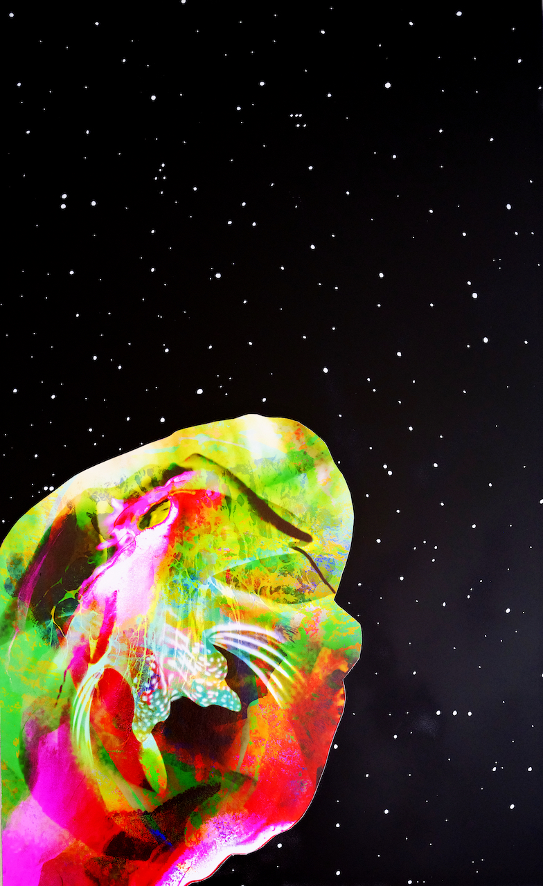 Mixed Media printed auf Folie, geklebt auf Recycling-Platte (2cm)