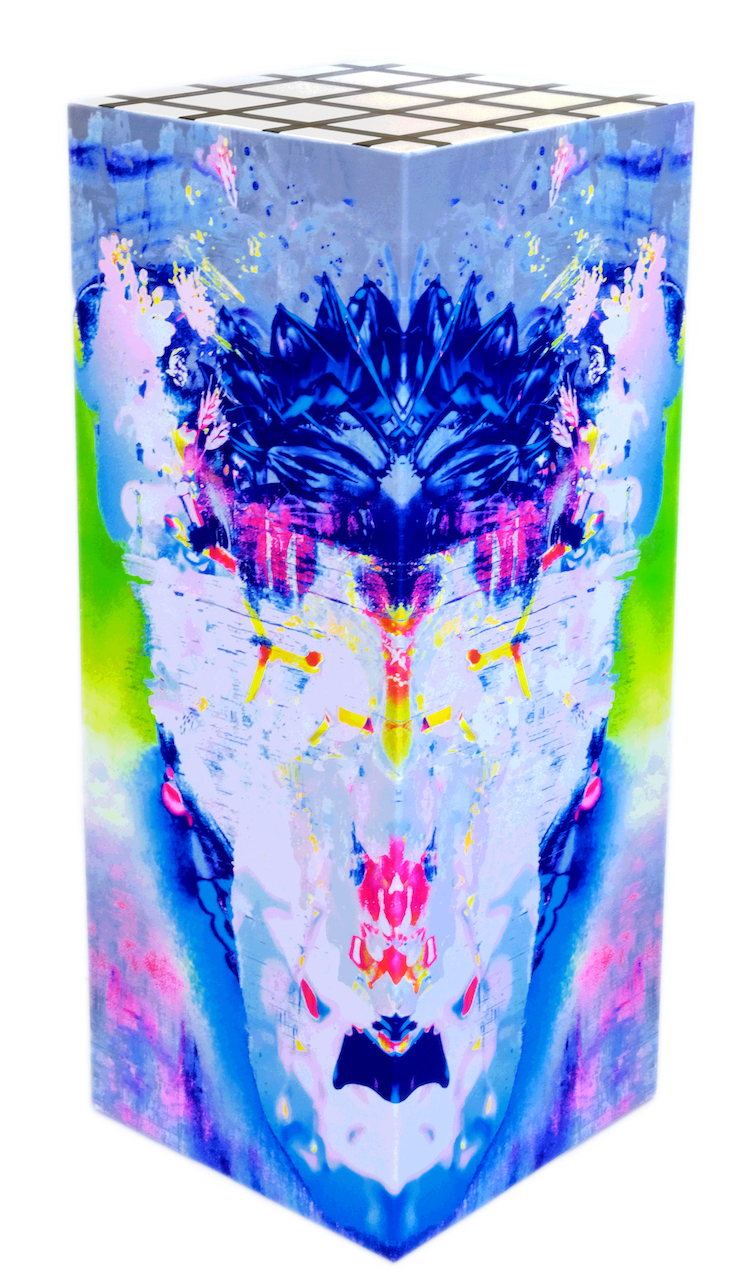 Mixed Media printed auf Folie, aufgezogen auf Holzsäule