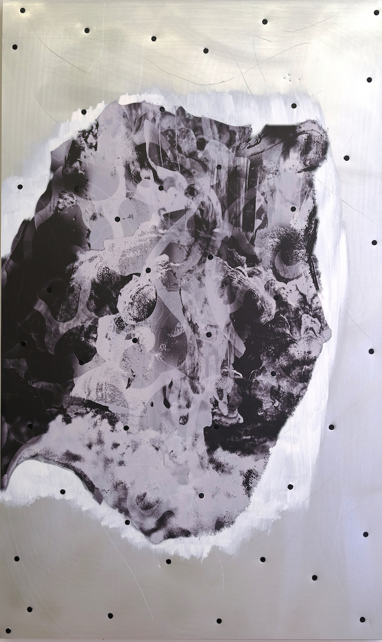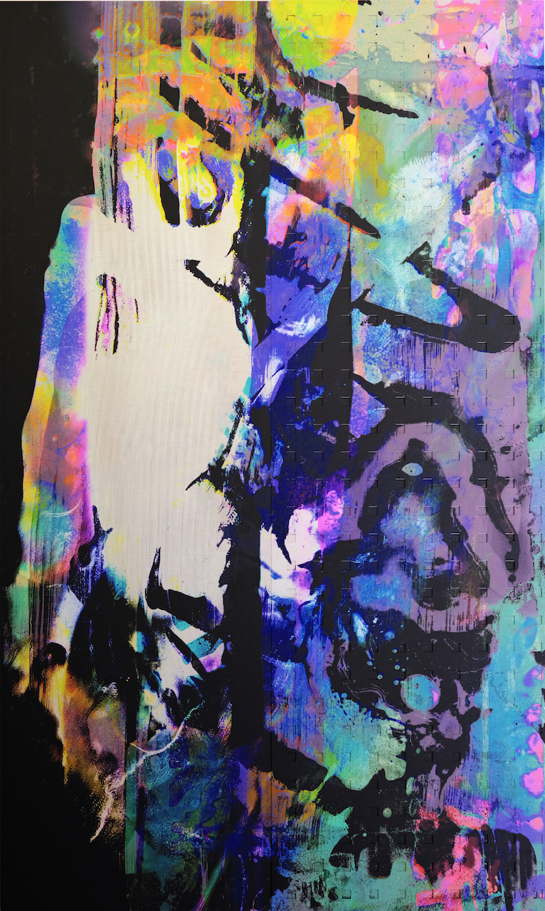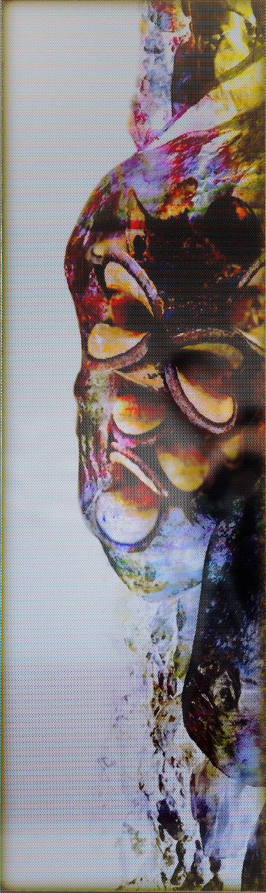 Mixed Media printed auf Alublech, aufgenagelt auf Holzplatte (2,5cm)
