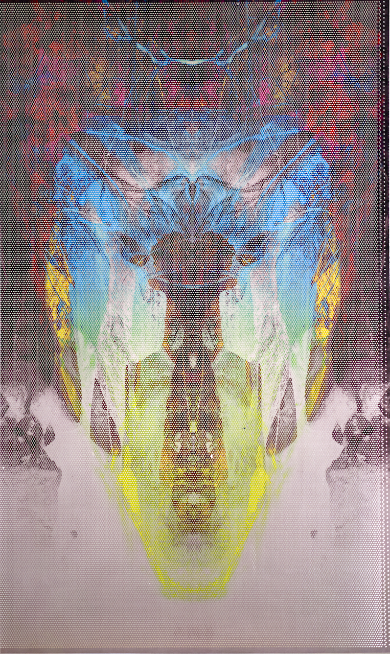Mixed Media printed auf Lochfolie, geklebt auf Spiegel (4mm)
